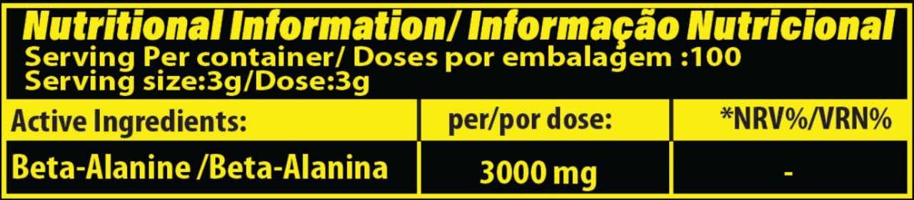 100% Beta alanina da mais alta qualidade e sem quaisquer aditivos.
