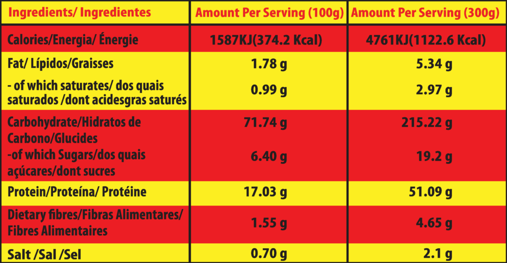 Ganhador de peso com proteína de alto valor biológico e carboidratos limpos. Baixo em gordura e sem açúcares adicionados. Ideal para ganhar massa magra com qualidade.